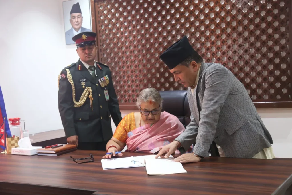 सार्थक ब्यूरो । नवनियुक्त प्रधानमन्त्री सुशीला कार्कीले आज पदबहाली गर्नुभएको छ । यही भदौ २७ गते अन्तरिम सरकारको प्रधानमन्त्रीमा नियुक्त हुनुभएकी उहाँले गृहमन्त्रालयका लागि नयाँ निर्माण गरिएको भवनमा पदबहाली गर्नुभएको हो ।